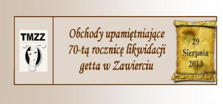 Towarzystwo Miłośników Ziemi Zawierciańskiej ma zaszczyt zaprosić mieszkańców powiatu zawierciańskiego i okolic do uczestnictwa w obchodach 70-tej rocznicy likwidacji getta w Zawierciu, które będą miały miejsce w dniu 29.08.2013 r.
