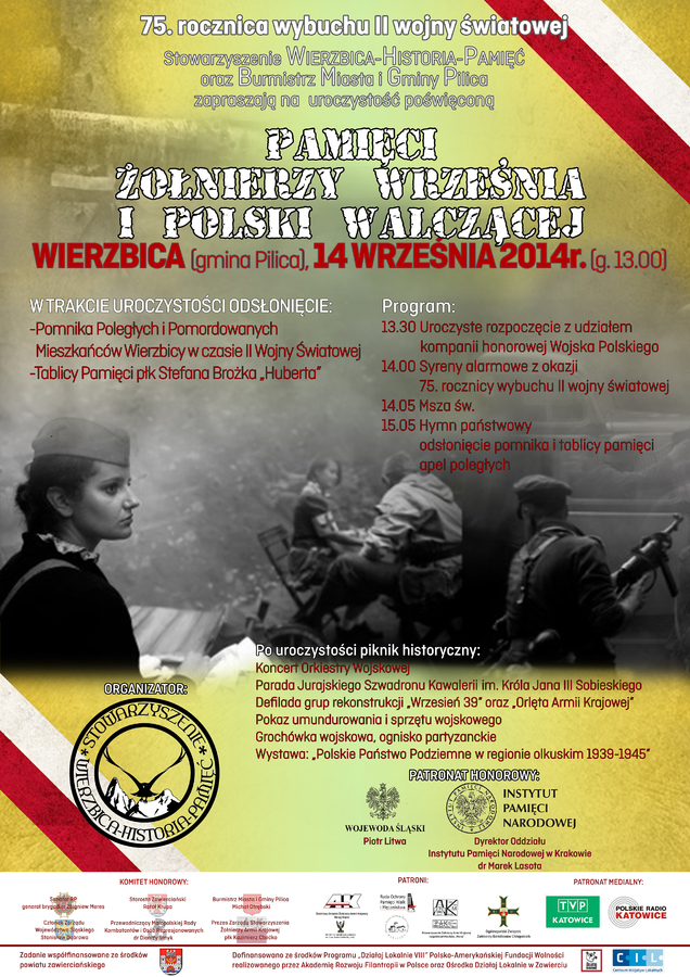 Stowarzyszenie Wierzbica - Historia – Pamięć zaprasza na Obchody 75 rocznicy wybuchu II wojny światowej - Pamięci Żołnierzy Września i Polski Walczącej