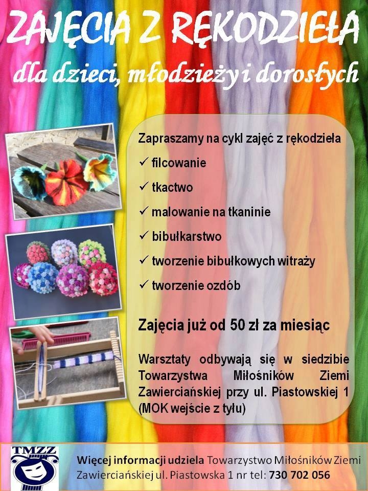 Trwają zapisy na zajęcia z rękodzieła, które będą prowadzone w siedzibie TMZZ w Zawierciu przy ul. Piastowskiej 1.