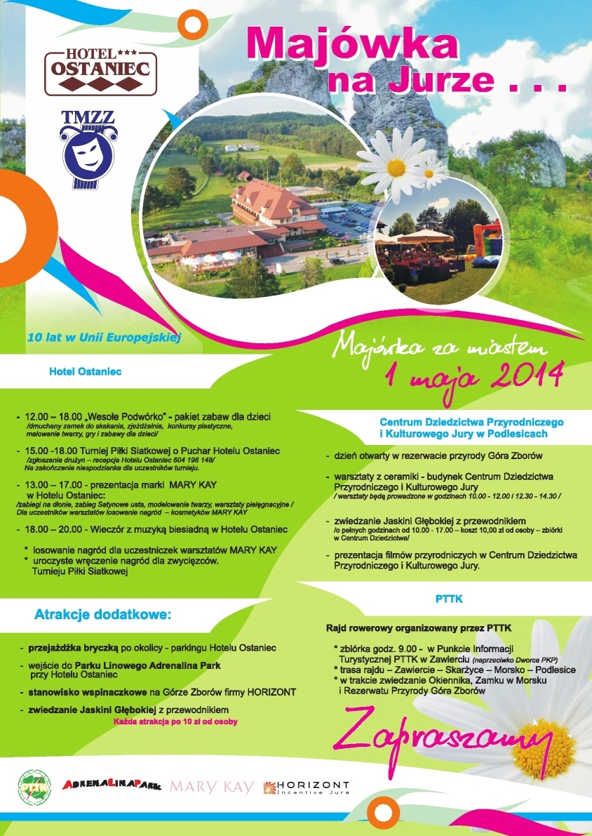 Serdecznie zapraszamy do spędzenia majowego weekendu poza miastem i do wzięcia udziału w organizowanej przez Towarzystwo Miłośników Ziemi Zawierciańskiej oraz Hotel Ostaniec Majówce na Jurze w dniu 1 maja 2014 r.